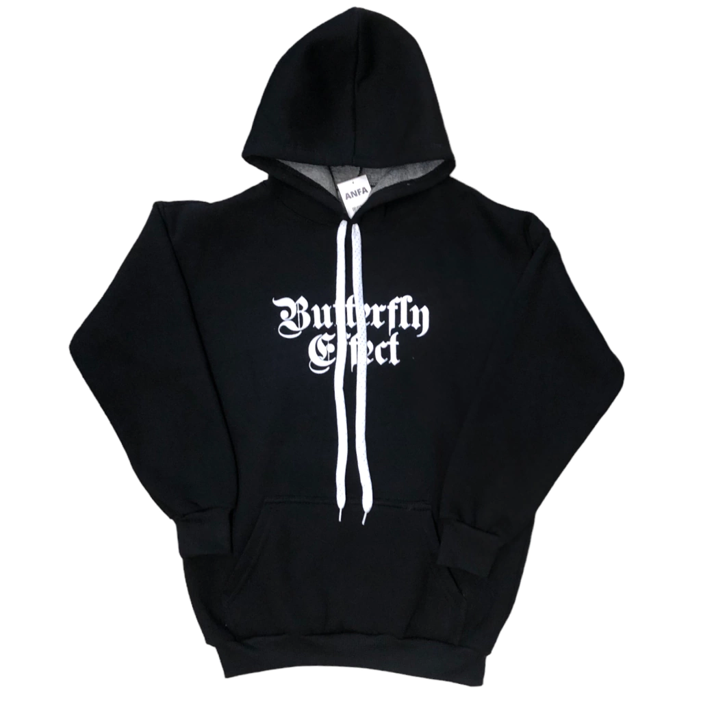 Buzos con frisa en color negro clásico. Quedan hermosos, estampa al frente y en espalda full. Letras góticas, súper en tendencia igual que la estampa de mariposa, muy pedida por las chicas de todas las edades!
