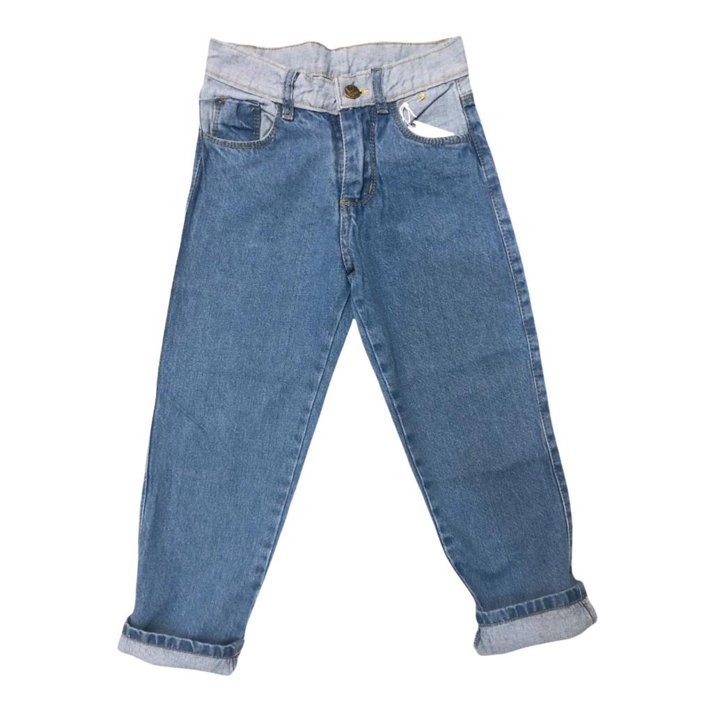 Jean rigido con cintura en constraste corte mom clásico. Liquidación últimos talles! No te lo pierdas!