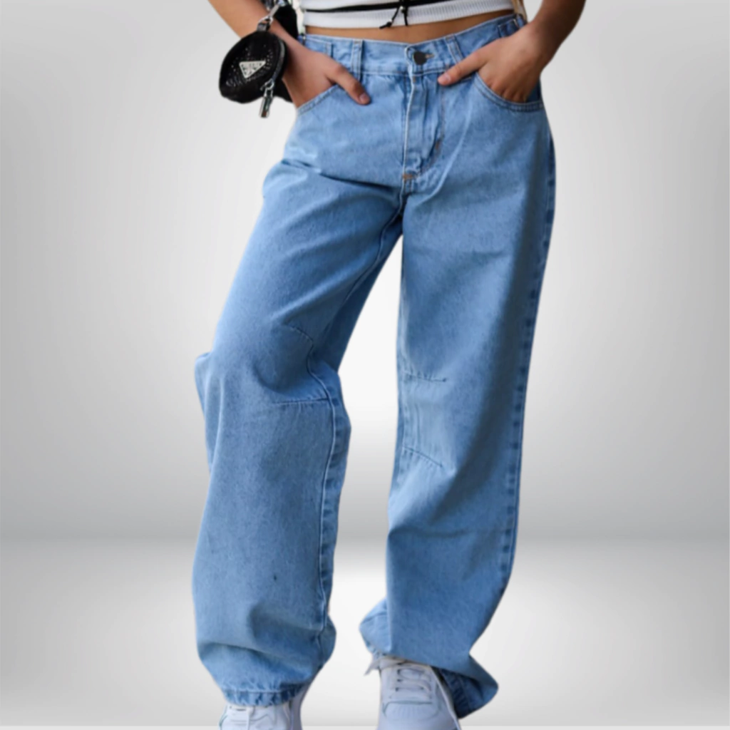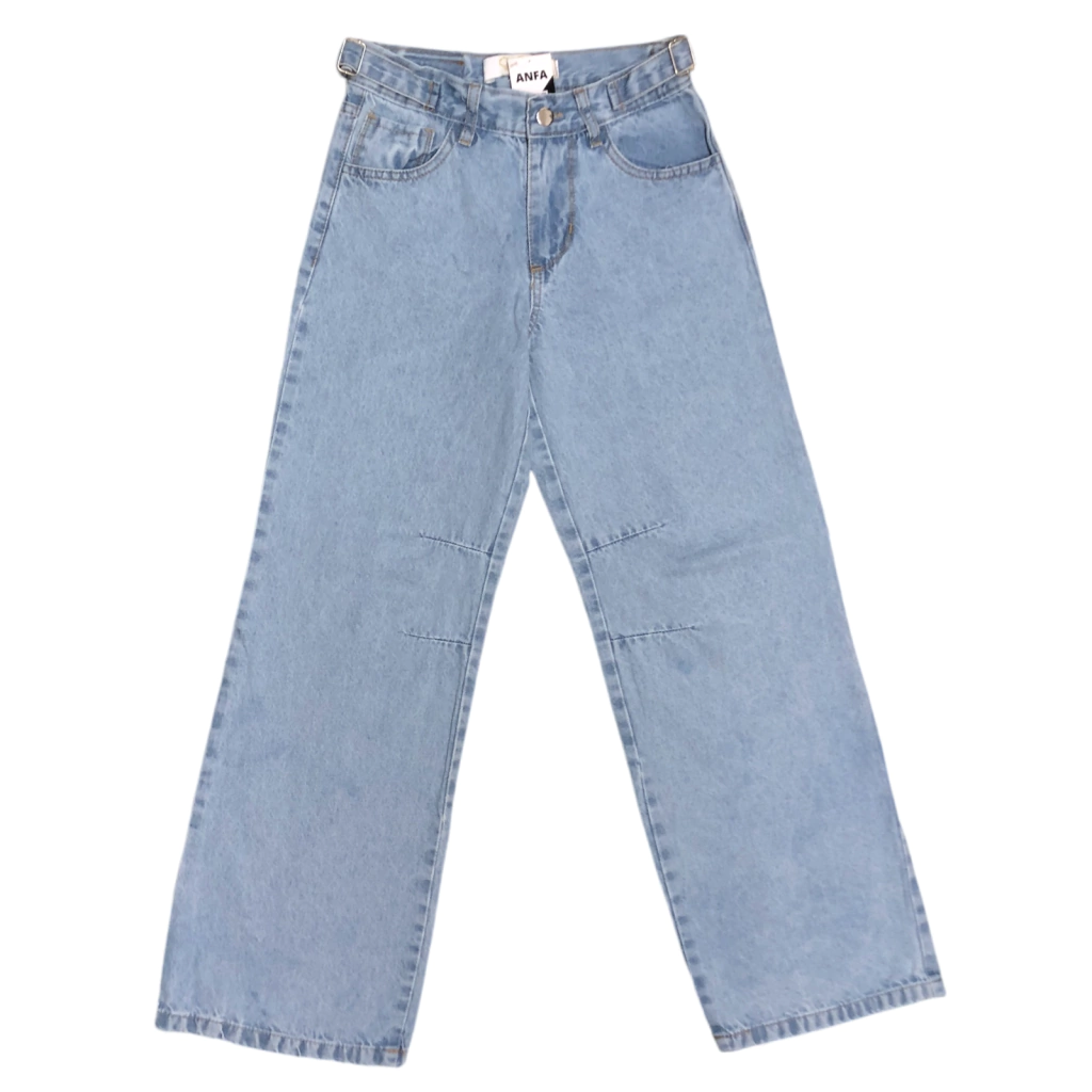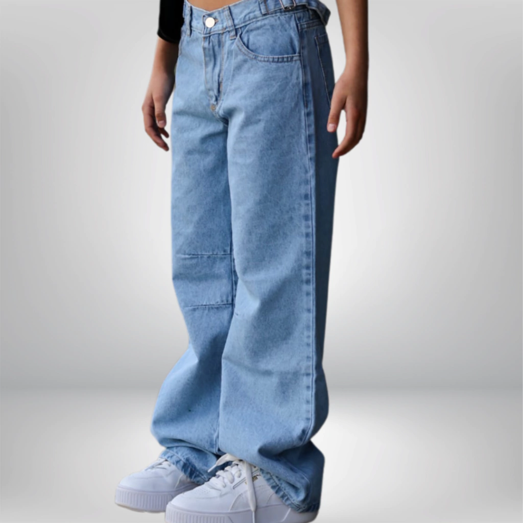 Jeans Wide Leg Color Celeste con Hebillas Ajustables - Modelo Zoe