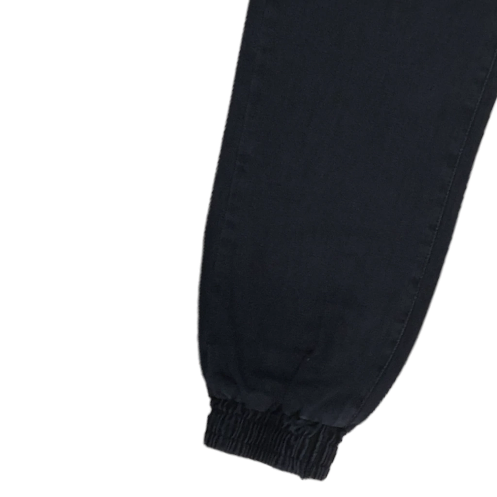 Jogger de jean rigido, aunque es liviano y súper cómodo, no lo van a sentir como un denim duro para nada! Lo van a adorar! Color negro lavado, con elástico en la cintura y botamanga. Largo al tobillo.
