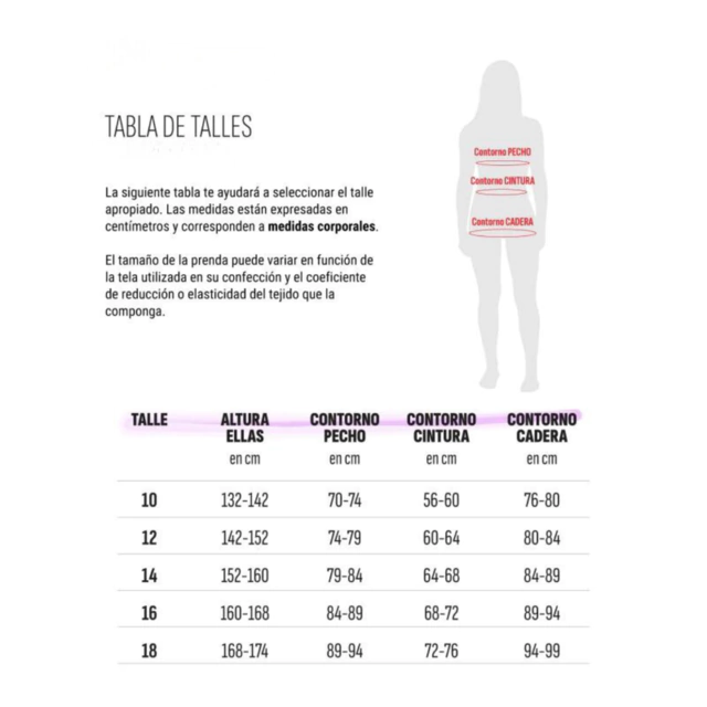 Tabla de talles en las fotos. Son medidas corporales a partir de las que podes elegir el talle.