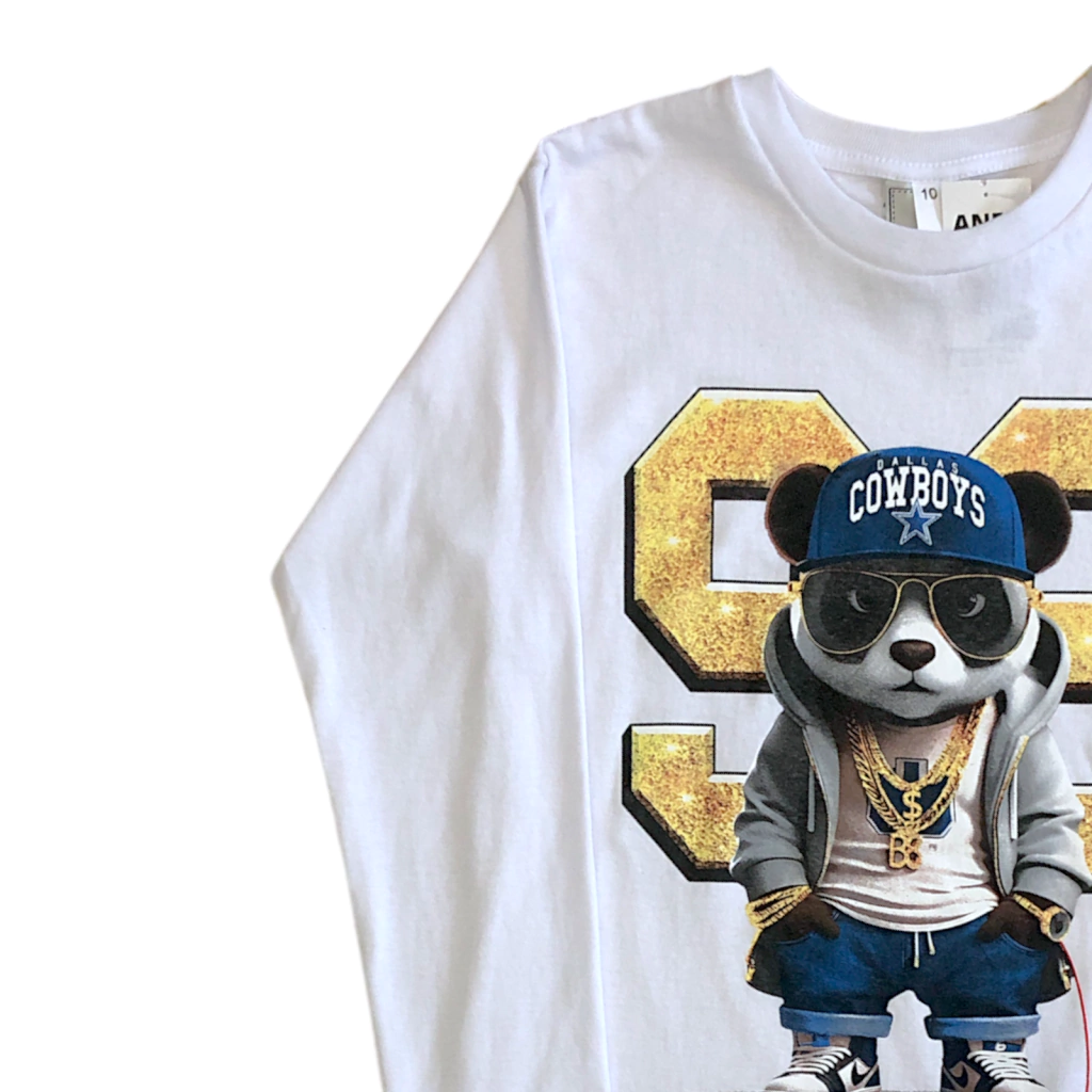 Remera de algodón mangas largas con estampa al frente súper original y divertida, los chicos aman estas remeras! El algodón es grueso así que son abrigadas, y el color blanco es básico y combina con todo, las van a usar un montón! Tener en cuanta que son talles amplios