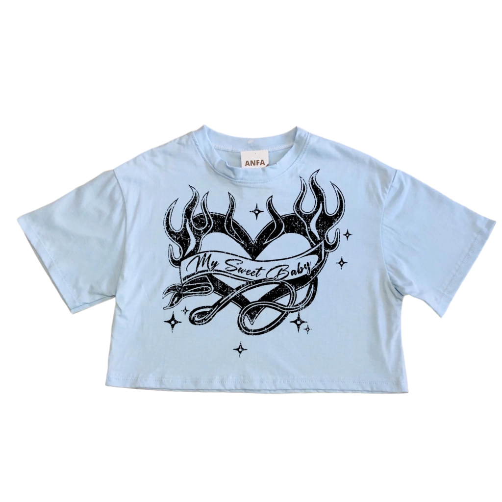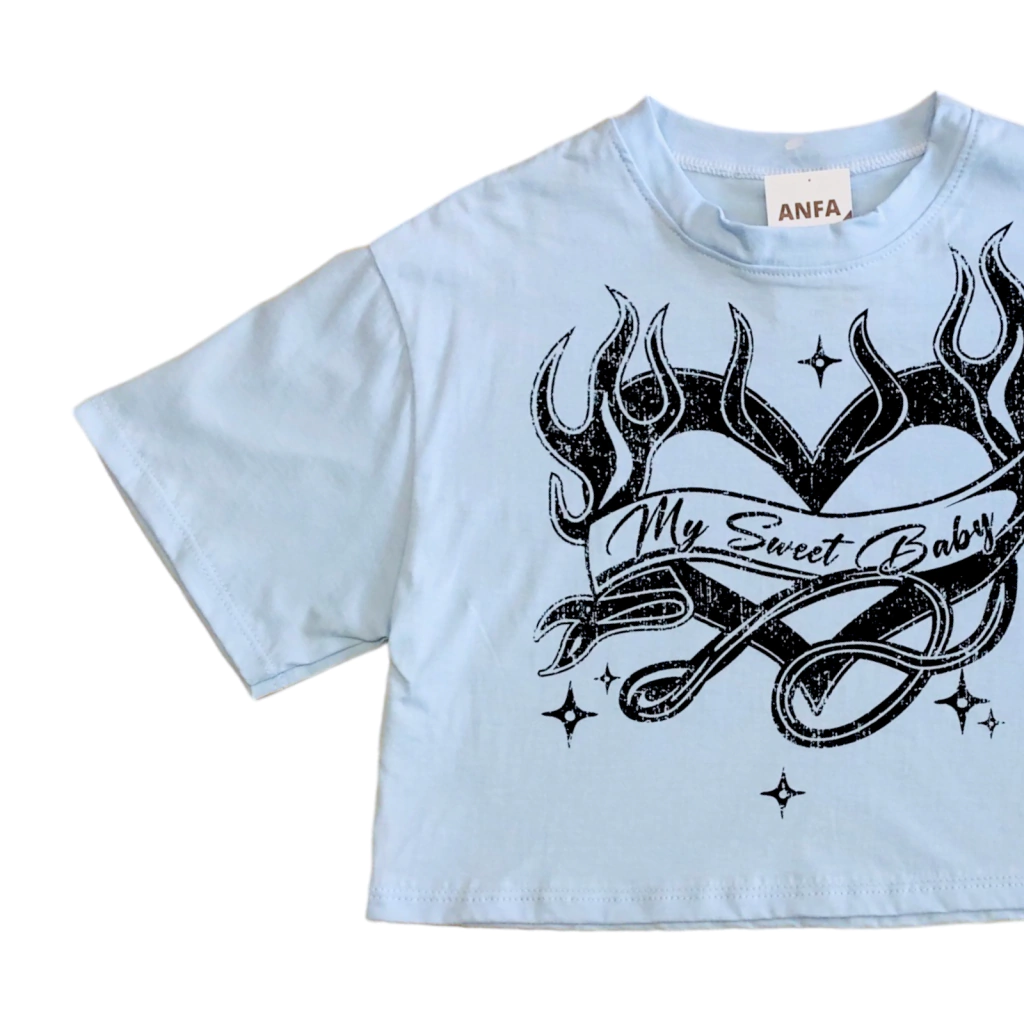Descubrí la Remera Pupera Sweet, elaborada en algodón de alta calidad y en un hermoso color celeste. Este modelo se destaca por su estampa súper en tendencia al frente, perfecta para las chicas que buscan un toque moderno y fresco en su guardarropa con este color tan original.