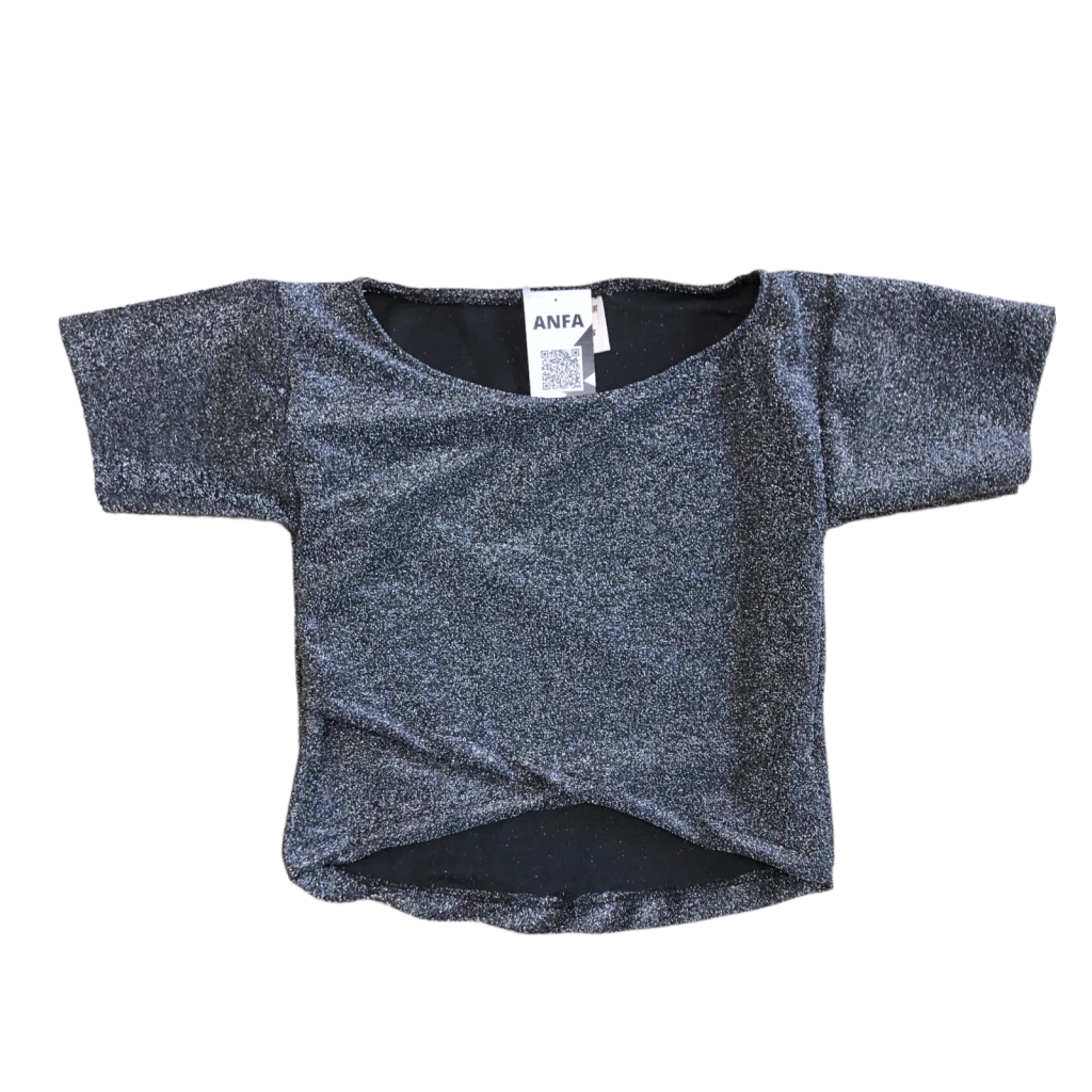Remera de lurex mangas cortas cruzada delante, estilo top.