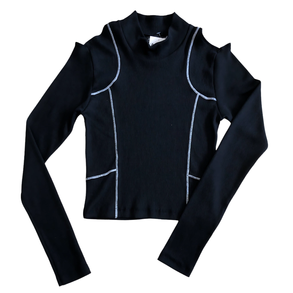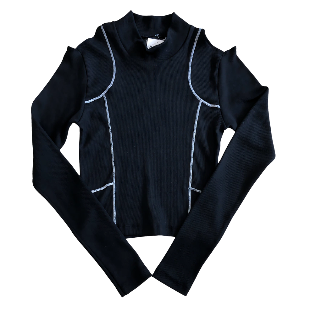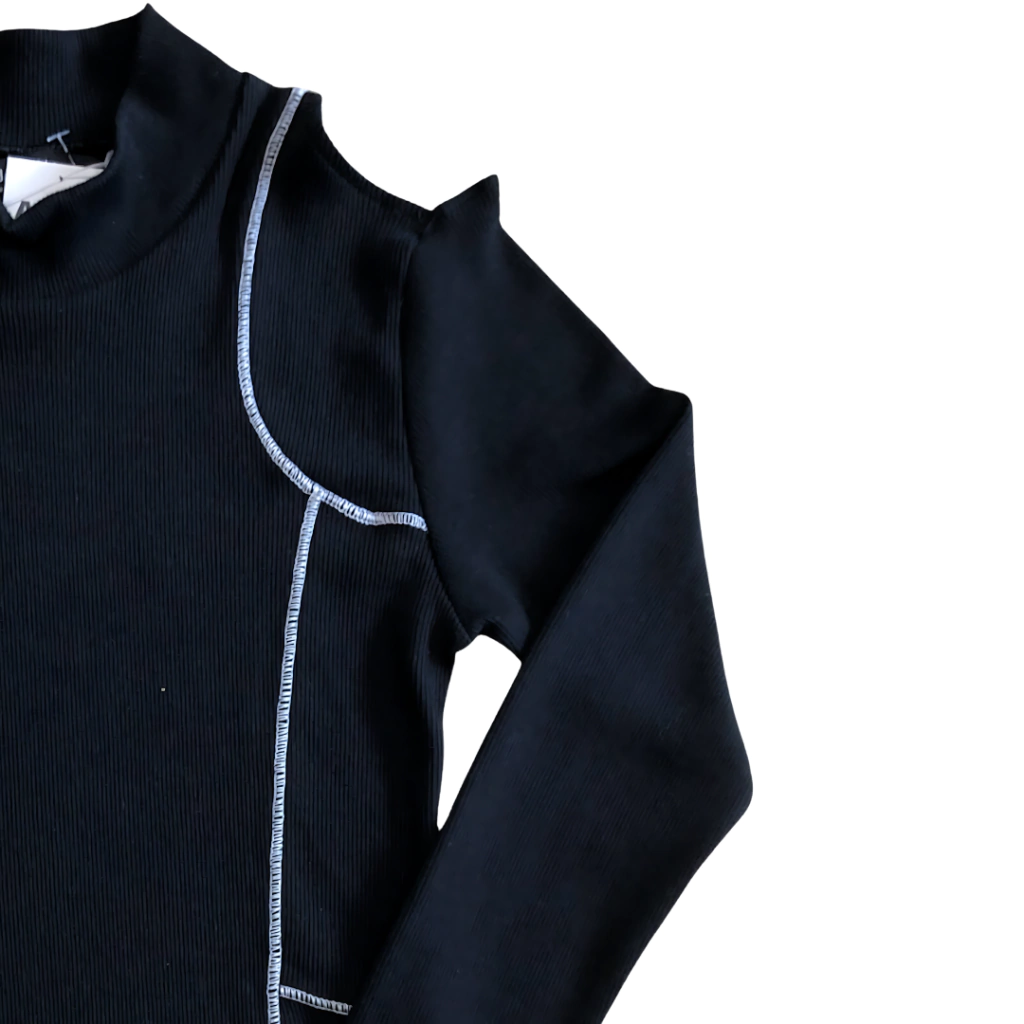 Top de morley grueso con costuras en blanco y detalle de vista en hombro. Mangas largas,apenas corto. Es un corte al cuerpo y tiene una aperturas pequeñas en los hombros, queda precioso! Es ideal para sus primeras salidas o cuando quieren "ropa de grandes" porque sigue siendo una prenda cuidada para nenas.