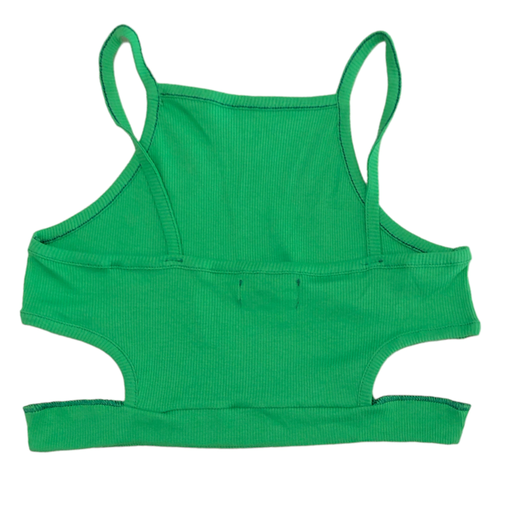 Top de morley en color verde con recortes y espalda baja. Los recortes en la cintura está muy de moda, es un estilo playero muy juvenil! Para usar con tus shorts favoritos!